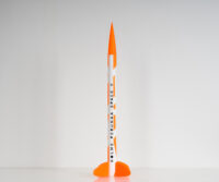 Cartón, madera y acrílico. La obra comprende el cohete, foto única de registro del lanzamiento y el certificado de vuelo. Pieza única
