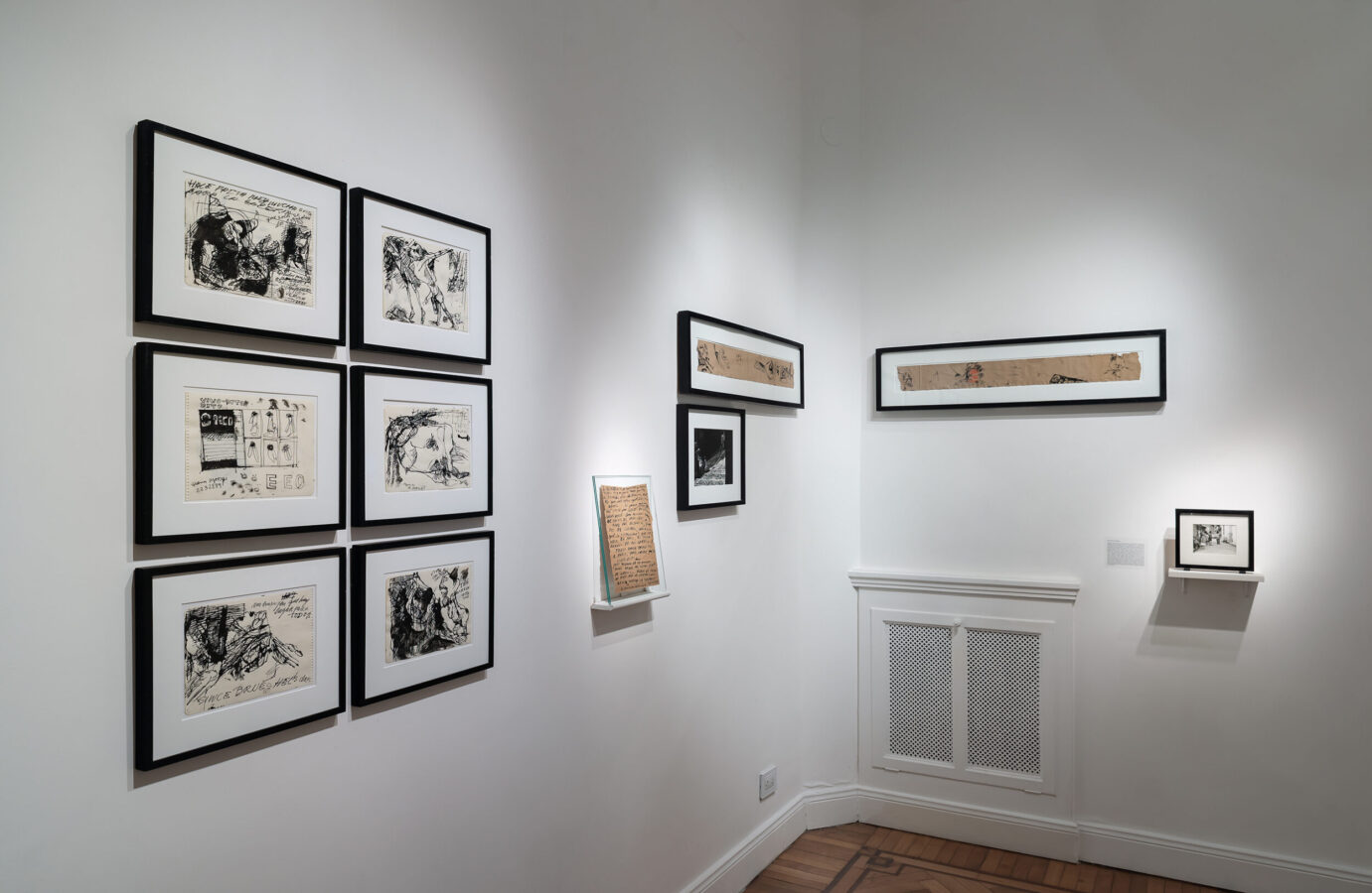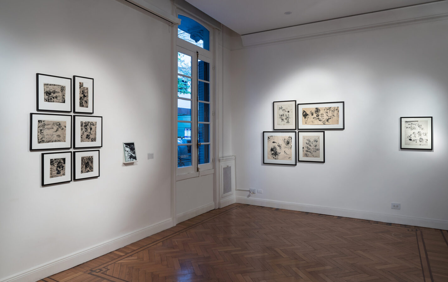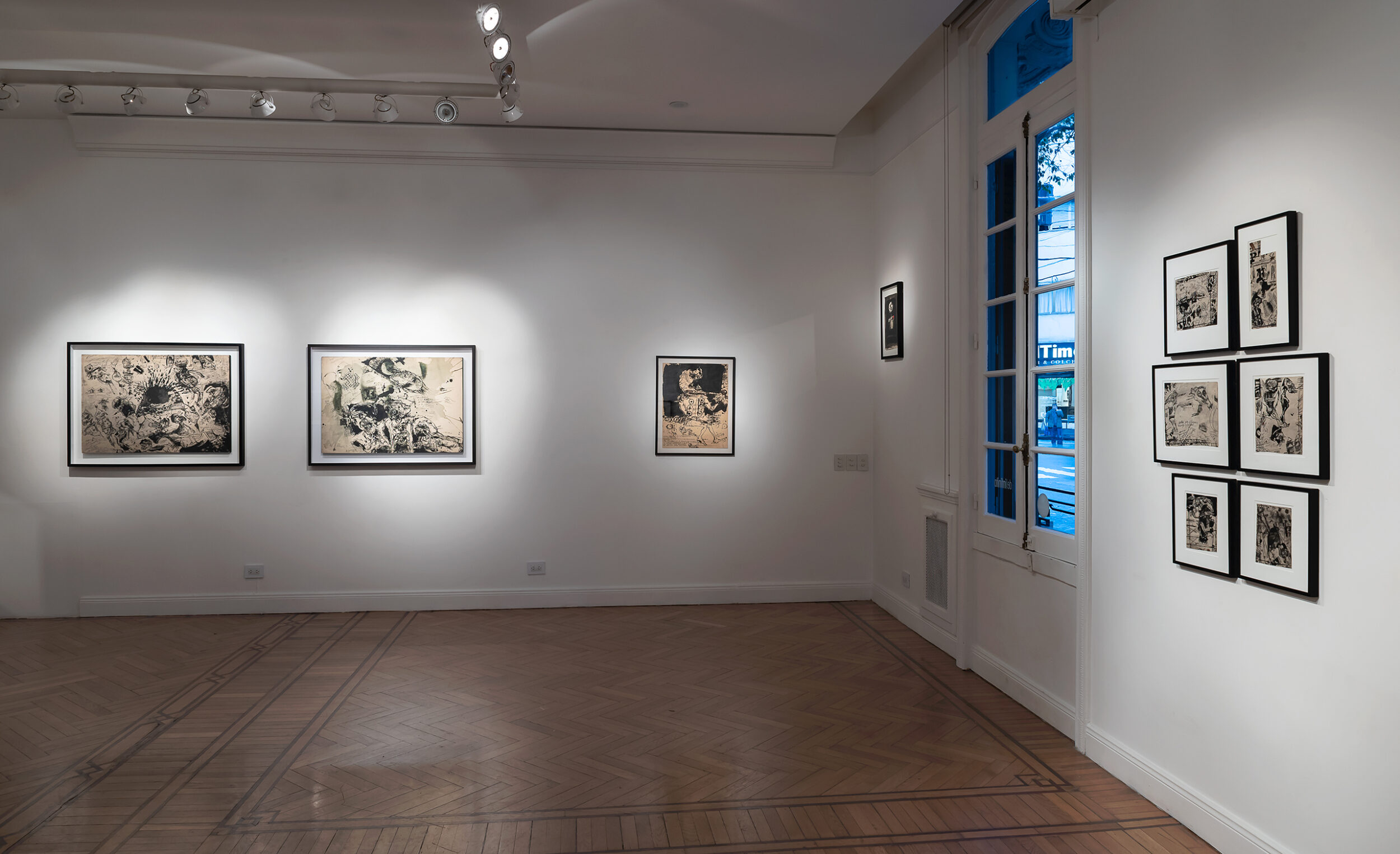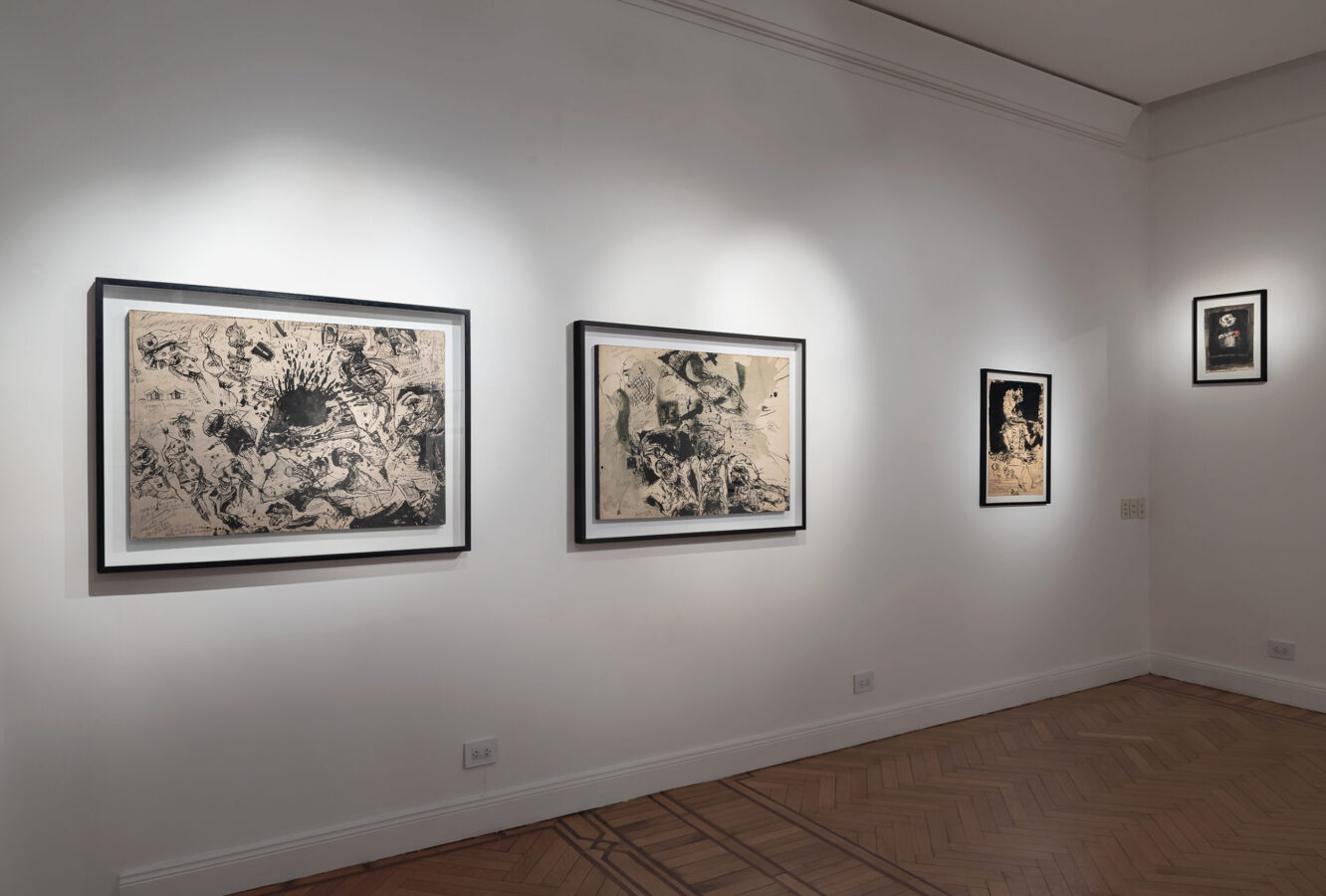 Concibió sus obras, en palabras de Antonio Saura, como “un diario de adiciones y de superposiciones, como obedeciendo a un sismógrafo interior”. El trazo de tinta prolifera en estos dibujos en apretados grafismos que se anudan, por momentos, en letra ilegible y rabiosa, en texto indescifrable. Deviene escritura manuscrita, mancha, huella, tachadura, garabato. La “mala letra” traiciona la correcta caligrafía que se moldea a través de toda una pedagogía disciplinaria del cuerpo y de la mano. Una mala escritura cuyo flujo -inconstante, torcido- obedece a las intensidades del cuerpo, a la experiencia de la deriva en la ciudad.