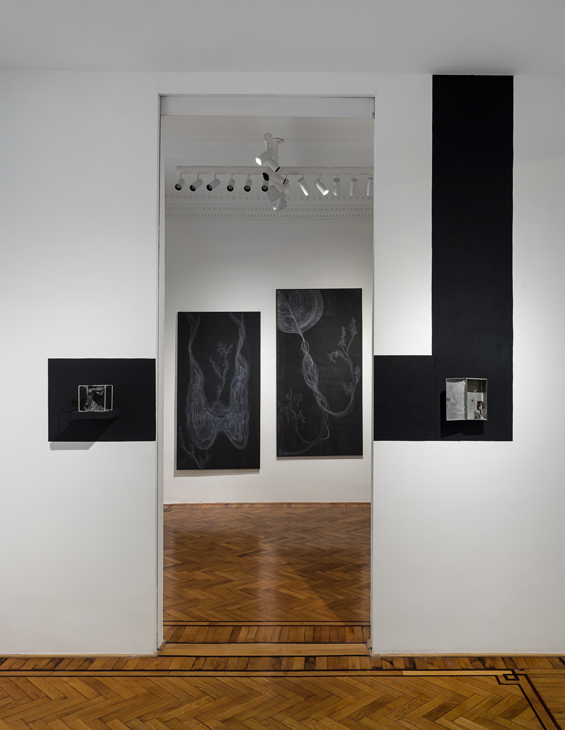 En las investigaciones de Emilio Renart, las líneas y organismos celulares aparecen como una exploración de la conciencia humana que expande el cuerpo desde su interior microscópico hacia dimensiones sociales y cósmicas. En las obras de Ginevra Landini, el material y las formas orgánicas emergen como cartografías sensibles donde raíces, ramificaciones y halos registran estados de percepción, memoria y pensamiento. Ambos artistas proponen un campo donde lo micro y lo macro se conectan continuamente, presentando la conciencia, las emociones y la materia como parte de un mismo sistema vivo.