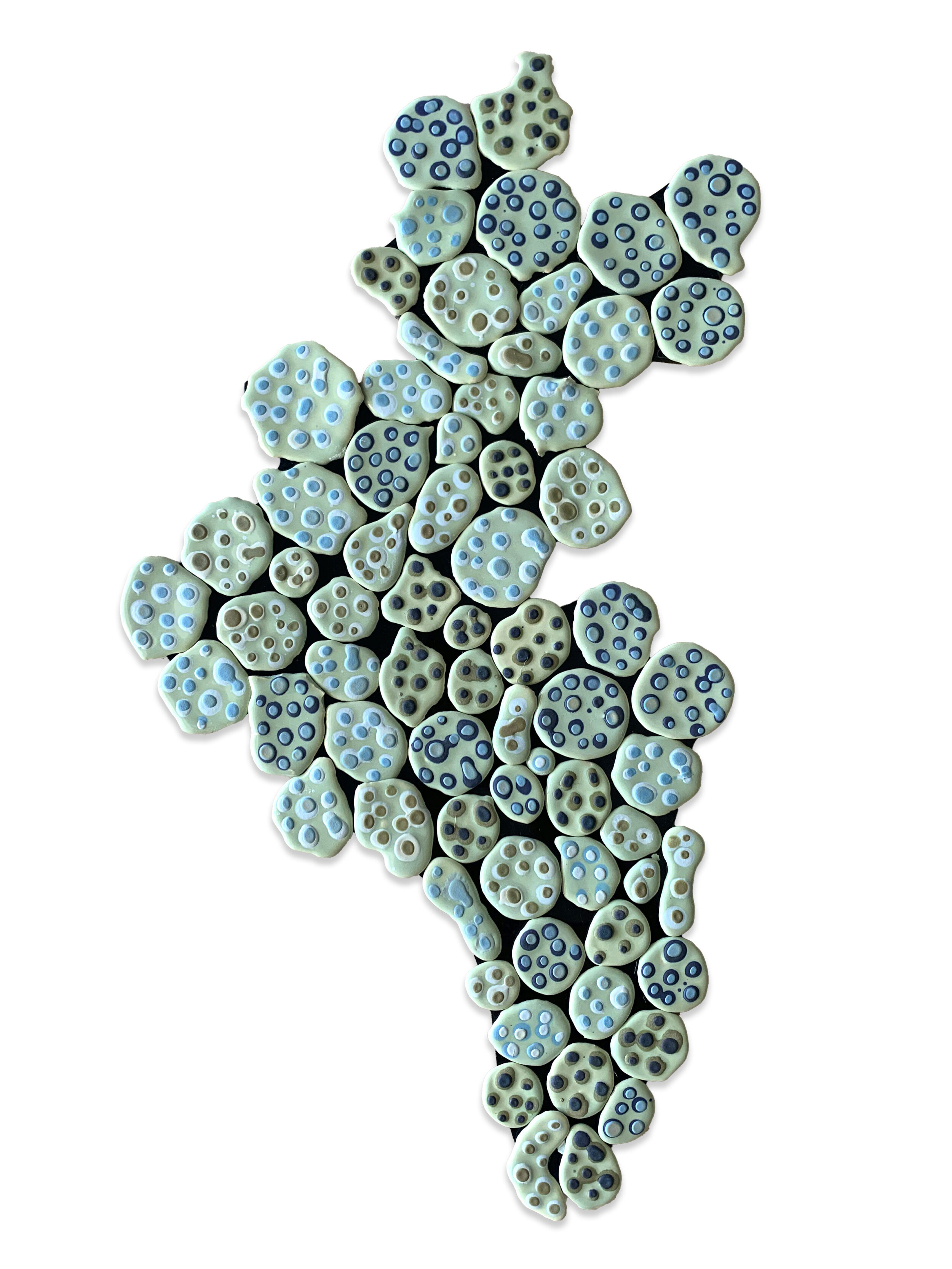 El proyecto curatorial Spectrum de Battistelli propone una práctica artística profundamente en sintonía con la energía de la Tierra. A partir de una relación íntima con los territorios que habita, desde las costas del río Paraná hasta la selva atlántica, su obra se despliega como una invitación a reconocer la fuerza vital que permea todas las formas de vida, traduciendo el “aliento del mundo” en materia sensible. Las piezas se conciben como extensiones del paisaje que articulan arte, ecología y espiritualidad, proponiendo una experiencia sensible que trasciende la representación tradicional.