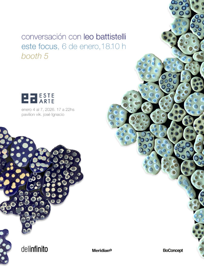 Galería Del Infinito anuncia su participación en ESTE ARTE 2026, la cumbre de arte contemporáneo que se realizará del 4 al 7 de enero de 2026 en Pavilion Vik, José Ignacio, Uruguay. En el marco de la feria, la galería presenta un recorrido especial con el artista Leo Battistelli en su stand, programado como parte de ESTE FOCUS | DEL INFINITO el martes 6 de enero de 2026, de 18:10 a 18:50 hs, abierto al público y en español.